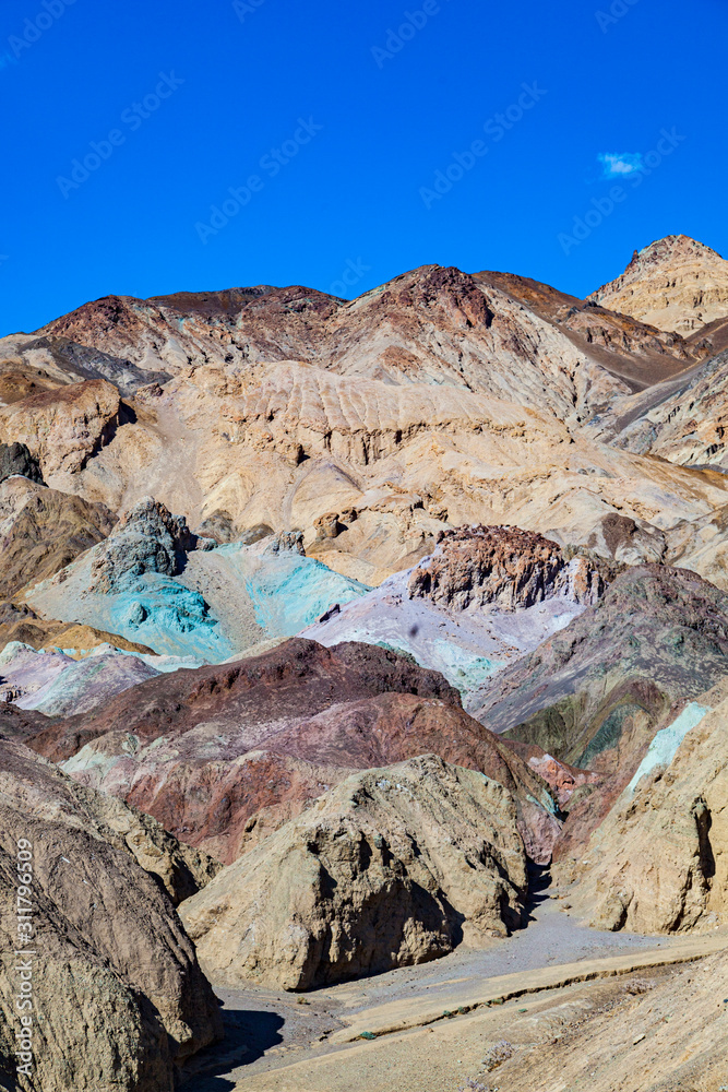 Artists Palette is located off of a one way loop road. View of the area called Artists. Artists Palette - Death Valley National Forest.